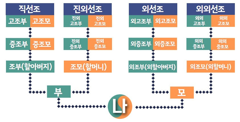 <나의 뿌리: 4선조=직선조, 진외선조, 외선조, 외외선조>