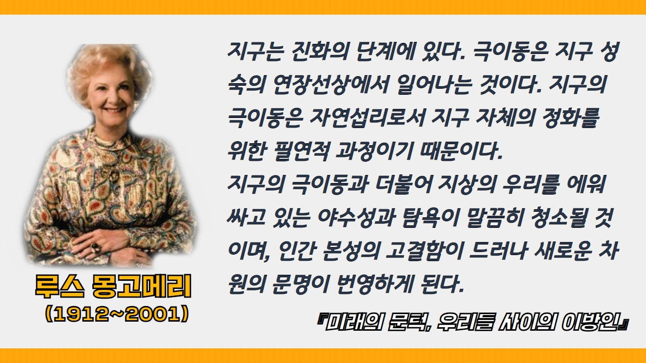 그 중 미국의 영능력자이며 문인으로 유명한 루스 몽고메리는 신명계의 지도령에게 미래 정보를 계시 받았는데요.