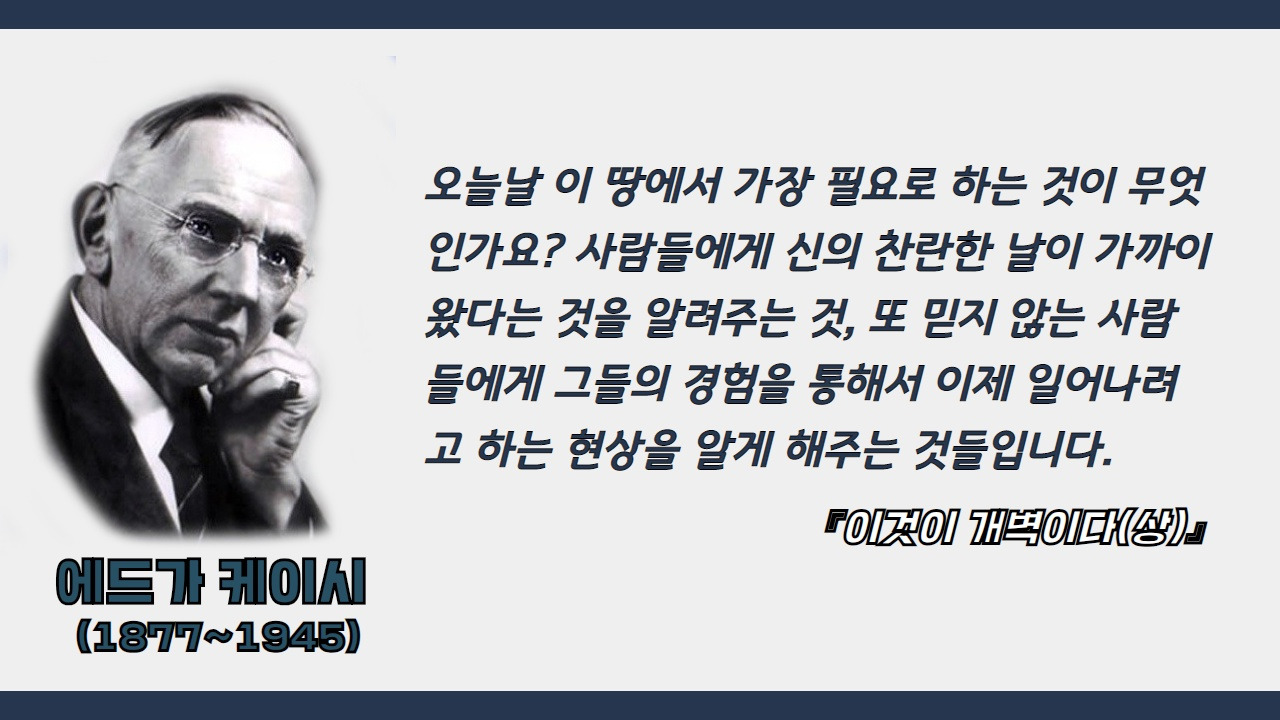 20세기 미국이 낳은 가장 위대한 예지자 에드가 케이시는 이렇게 말합니다.