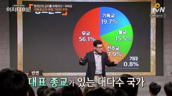 "안정된 사회를 가면 그 사회를 지배하는 지배 종교가 있습니다. 반면 우리나라는 다양한 종교를 선택할 수 있습니다.