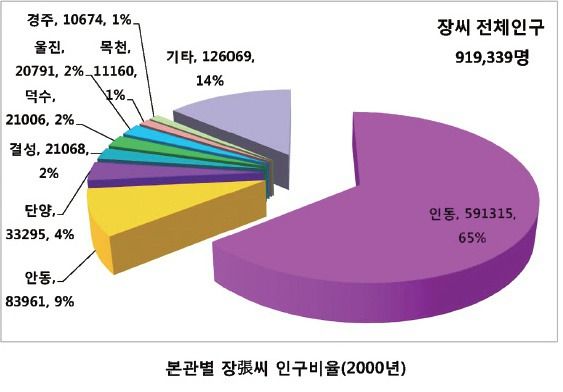 우리나라의 장씨는 크게 세 종족으로 나뉜다. 고려의 개국공신인 태사공 장정필을 시조로 하는 안동 장씨와 장경을 시조로 하는 흥성 장씨 일족과 장금용, 장계를 시조로 하는 인동 장씨 일족이다. 안동 장씨의 시조 장정필은 중국 절강성 출신으로 아버지와 함께 신라 말에 중국에서 망명하였다. 중국에서 들어온 장씨로는 덕수德水 장씨(시조 장순용張舜龍), 절강浙江 장씨(시조 장해빈張海濱)가 있다. 장순용은 회회계(아랍계)의 사람으로 고려 고종 때에 귀화하였고 장해빈은 중국 항주 조강현 출신으로 조선 선조 정유재란 때에 장수로 와서 군위軍威에 정착하여 세거하였다. 그 외 대부분의 장씨는 인동 장씨와 안동 장씨에서 분적하였다. 장張씨의 본관은 문헌상 270여 본이 전하나 현존하는 것은 20여 본이다. 그런데 최근에 장씨의 연원을 추정해볼 수 있는 새로운 연구결과가 등장했다. 서울대 사학과 송기호 교수가 「발해국지渤海國志」와 「신당서新唐書」, 「구당서舊唐書」를 비롯하여 각종 사료와 외교문서에 남아있는 대진국(발해) 지배층의 성씨를 조사, 분석해 뽑은 적이 있다. 그 결과 조사대상 380명 중 왕족인 대大씨가 117명으로 가장 많았고, 그 다음으로 고高씨가 63명, 이李씨가 21명, 장張씨가 20명이고, 기타 성씨가 134명이었다. 이중 확실히 밝혀진 유력한 귀족 성씨는 고高씨, 이李씨, 장張씨, 양楊씨, 두竇씨, 오烏씨였다(KBS역사스페설 ‘발해, 고구려를 꿈꾸다’-2005년 11월 25일 방영). 대진국은 고구려 땅에서 일어나 고구려를 계승한 나라인 만큼 장씨가 적어도 고구려 시대부터 나라의 대성으로 자리잡고 있었음을 알 수 있다. 역사 기록을 보면 장정필 이전에도 장씨가 존재했음을 살펴볼 수 있는데, 백제의 장무張茂, 대진국의 장문휴張文休 장군, 신라의 장웅張雄, 장보고張保皐, 고려의 장일張一 등이다. 이제 장씨가 중국에서 건너왔다는 이야기는 신빙성이 약한 것으로 봐야 한다.