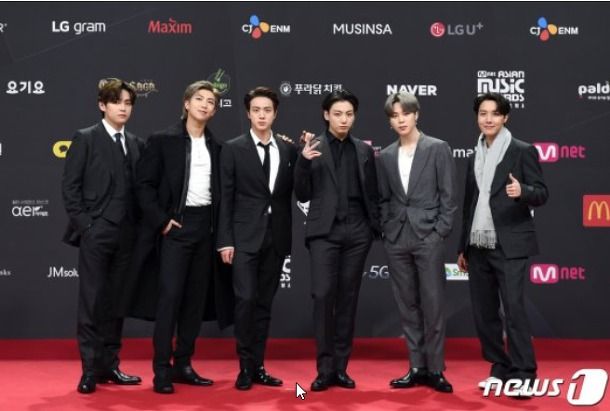 그룹 방탄소년단이 6일 오후 서울 마포구 월드컵경기장에서 비대면으로 열린 2020 엠넷 아시안 뮤직 어워즈(MAMA)에 참석해 포즈를 취하고 있다. CJ ENM 제공
