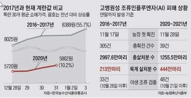 하지만 계란 값 파동이 터져 미국산 계란까지 수입했던 2017년 1월의 AI 확산 상황과 비교해보면 정부 발표만 믿고 안심하긴 이르다는 지적이 나온다.