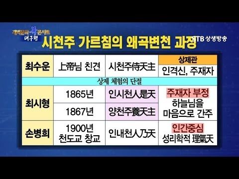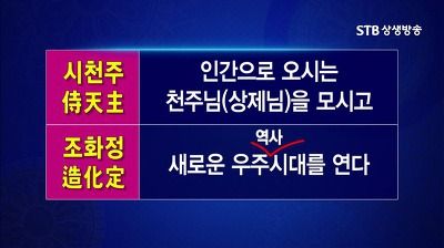 그런데 동방에서, 서학의 꿈과 천국의 이상을 완성하는 동학이 지금 하느님 아버지의 명을 받아가지고 시천주를 선언하고 있어요. 시천주에서 시는 모실 시侍 자예요. 누구를 모셔요? 이제는 천주를 모신다 이겁니다.