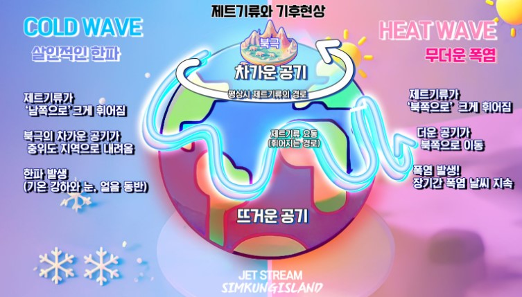 - 제트기류 약화 및 경로 불안정 → 기상 변화가 극단적이고 불규칙해짐