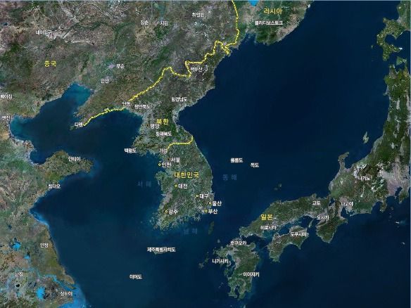 그러고서 우리나라 금수강산 삼천리가 생겼는데, 우리나라를 중심으로 일본열도가 좌측에서 바짝 감싸주고 있다.