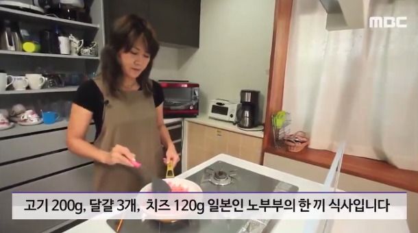 고기 200그램, 달걀 3개, 치즈 120그램. 일본인 노부부의 한끼 식사입니다.