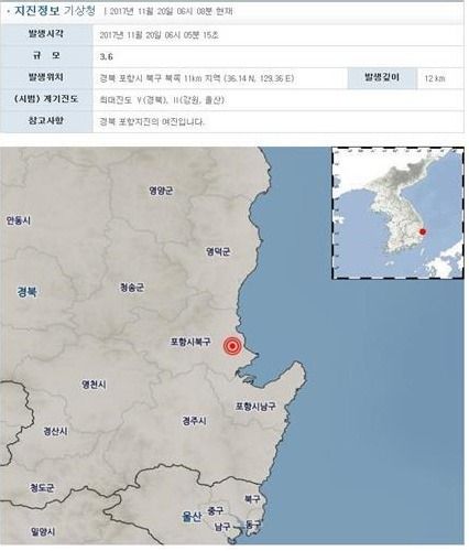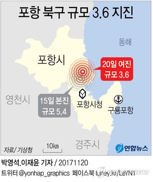 규모 3.6은 지난 15일 발생한 포항 본진(규모 5.4)의 여진 가운데 두 번째로 큰 수준이다.