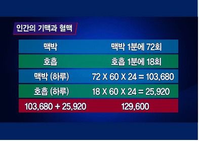 1분 평균 맥박 수 72×60×24〓103,680회, 25,920+103,680〓129,600)다.