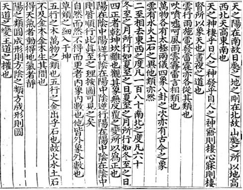 ■ 하늘에서 양陽은 남쪽에 있으므로 해가 그 곳에 있고 땅에는 강剛은 북쪽에 있으므로 산이 그 곳에 있다. 그러므로 땅은 서북쪽이 높고 하늘은 동남쪽이 높다.