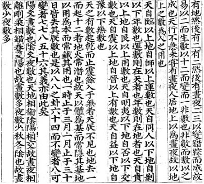 ■ 땅이 있은 뒤에 2 가 있고 2 가 있은 뒤에 낮과 밤이 있다. 2 와 3 이 변하고 한데 어울려 뒤섞이어 이루는 것이다. 그러므로 역易은 2 에서 생기고 수數는 12 에서 변한다. 따라서 1 은 수數가 아니다. 수數가 아닌데 수數를 이루는 것이다. 하늘에서는 그리 낮과 밤이 필요 없다. 사람이 땅 위에 살면서 낮과 밤으로 여겼다. 그러므로 땅 위의 수數는 사람이 쓴다.