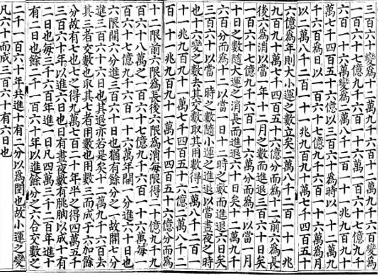■ 360 이 변하여 129,600 이 되고 129,600 이 변하여 167 억 9,616 만 이 된다. 167 억 9,616 만이 변하여 28,211 조 990 만 7,456 억이 된다. 360 은 시時가 되고 129,600 은 일日이 되고 167 억 9,616 만은 월月이 되고 28,211 조 990 만 7,456 억은 년年이 되는데 그리하여 대운大運과 소운小運의 수數가 이루어진다. 28,211 조 990 만 7,456 억을 12 로 나누면 앞의 6 은 장長이 되고 뒤의 6 은 소消가 되는데 이것은 1 년 12 월의 수數, 그리고 360 일 진퇴進退와 같다. 167 억 8,616 만을 10 으로 나누면 1 월 10 일의 수數와 같다. 대운大運의 소장消長을 따라 60 일 진퇴進退가 있다. 129,600 을 12 로 나누면 1 일 12 시時의 수數, 그리고 6 일 진퇴進退와 같다.