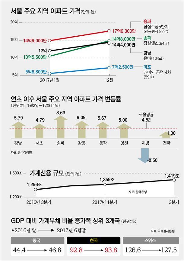 [2017 한국경제 빛과 그림자] 잇단 부동산 대책에도.. 집값 오르고 가계빚 눈덩이