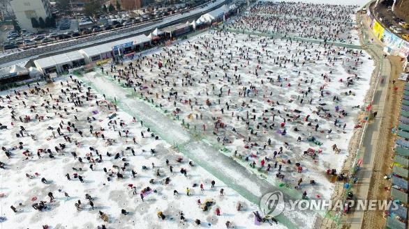 (화천=연합뉴스) 양지웅 기자 = 화천산천어축제가 12년 연속 관광객 100만명 돌파 기록을 세우며 세계 4대 겨울축제 면모를 과시했다.