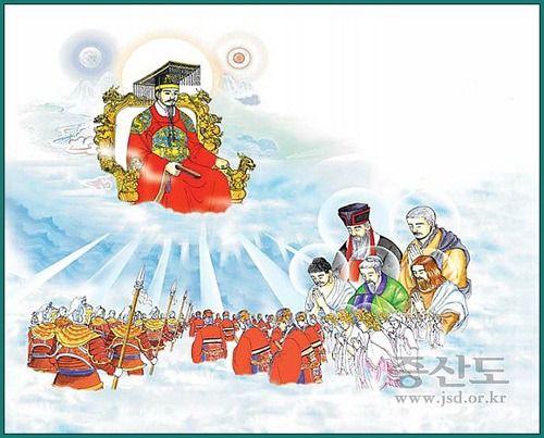 6:7:1 옥황상제. 일찍이 차경석 성도는 조선총독부 촉탁인 민속학자 무라야마 지쥰(村山智順)과의 대화에서 ‘옥황상제와 강증산의 관계는 어떠합니까?’라는 질문에 ‘그 자리가 상제입니다. 생존시에 내가 옥황상제다 하는 말씀도 계셨습니다.’라 밝힌 바 있다. <『차교주와 촌산지순(村山智順)과의 문답기』>