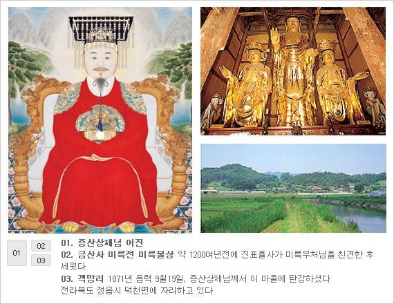 증산도에서는 이 분을 ‘강증산姜甑山 상제님’이라고도 하지만, 성씨는 빼고 그냥 ‘증산甑山 상제님’이라고 대부분 불러 드리고 있답니다.